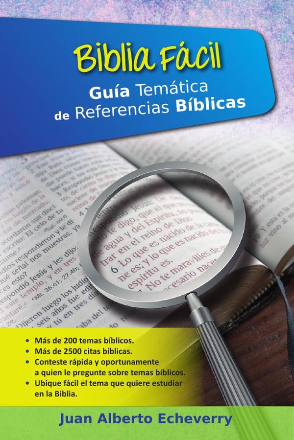 Un libro escrito por Juan Alberto Echeverry. Es una guía de referencias Bíblicas agrupadas por temas, para poder ubicar rápida y fácilmente en la Biblia, el tema que desee. Más de 200 temas bíblicos, más de 2500 citas bíblicas. Útil para dar respuesta con fundamentos bíblicos, si te gustaría saber que dice la Biblia sobre algún tema específico o si quieres compartir algún tema en el grupo de oración. Es una maravillosa herramienta para edificar nuestras vidas sobre temas cotidianos y tener la co