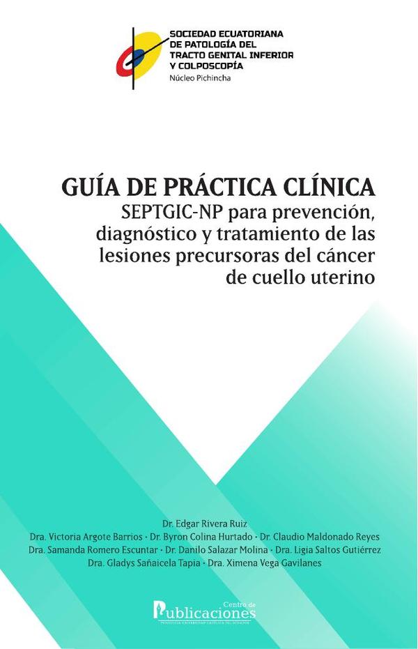 La Guía de Práctica Clínica para prevención, diagnóstico y tratamiento de las lesiones precursoras del cáncer de cuello uterino constituye el mayor esfuerzo realizado por la Sociedad Ecuatoriana de Patología del Tracto Genital Inferior y Colposcopía, Núcleo Pichincha, para brindar a la comunidad médica que se ocupa de la salud femenina una herramienta de apoyo que sin duda facilitará la toma de decisiones oportunas y acertadas para nuestras pacientes.Realizada con una metodología muy disciplinada, cuenta con evidencia actualizada de la más alta calidad, lo que la ubica a la altura de las mejores guías internacionales.Se han desarrollado temas relacionados con la prevención del cáncer de cuello uterino mediante la vacunación y la educación sobre los factores de riesgo, el tamizaje con una prueba de alta sensibilidad y el diagnóstico de las lesiones precursoras, incluyendo la nomenclatura colposcópica de Rio 2011 con las últimas modificaciones; pero, sin duda, lo que más aportará a los lectores será la precisión en el manejo de las pacientes basado en su riesgo individual, a través de una acertada combinación entre el resultado de las pruebas de tamizaje, las pruebas diagnósticas y los antecedentes de cada paciente. Cabe señalar que se ha dedicado un acápite particular al diagnóstico y manejo de las pacientes en situaciones especiales, tales como adolescencia, embarazo, VHI e inmunocompromiso por otras causas.